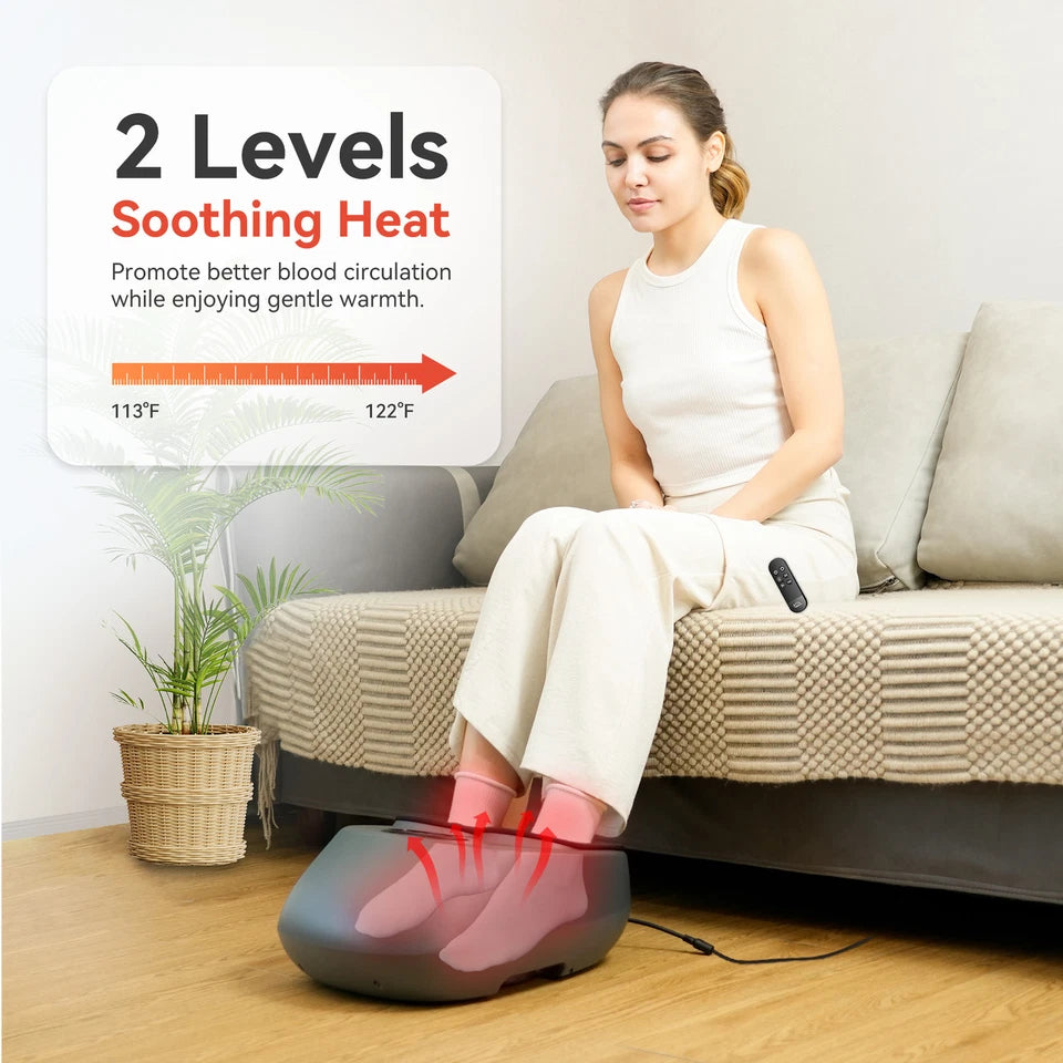 【Fast Heating, Warm enough】Upgraded Snailax foot massager machine can quickly heat up in seconds,can reach temperatures up to 131F. A perfect foot heater, foot warmer for women or men to warm full stiffness cold feet in Winter. Helps improve blood circulation,reduces body fatigue and promotes better sleep. High/Low heat settings for options. The heating can work independently.