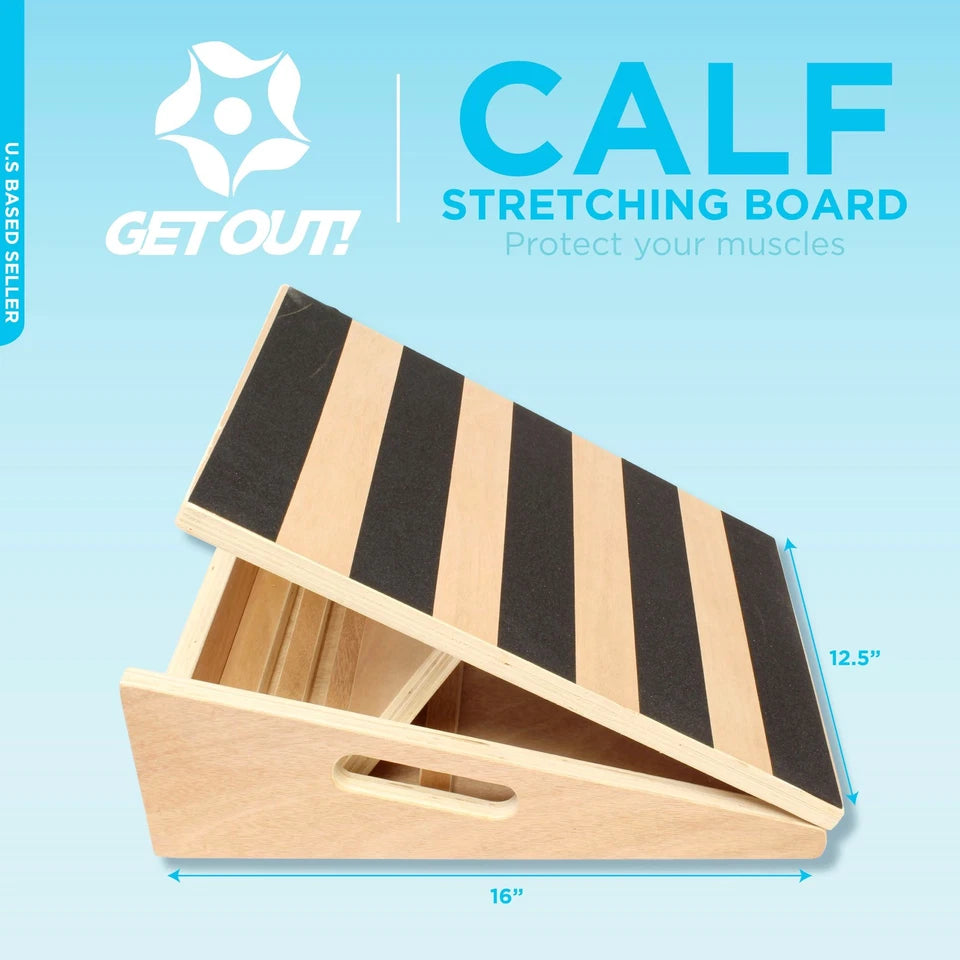 LIVE A HEALTHY LIFE: The Get Out! | Calf Stretch Board makes your muscles more responsive during exercise and allows you to stretch properly before and after exercise to reduce the chance of workout related injuries; Increase flexibility, strength, balance, and stability, relieve stress around muscles, improve digestion, improve posture, breathe easier, relieve headaches; With hands-free design, you can do additional arm exercise while standing on the stretch block or even use as footrest